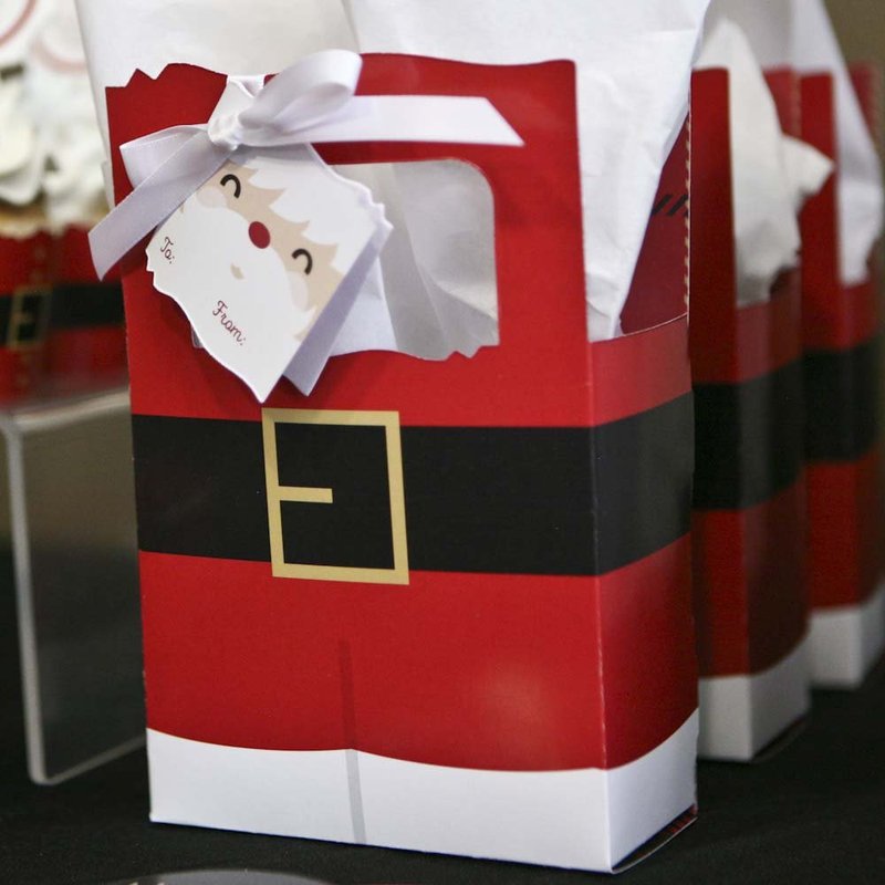 - Jolly Santa Claus Favor Boxes INCLUDES 12 mom’s favor bags, 12 gift tags and coordinating satin ribbon. Classic favor boxes are a party must-have. Santa theme party supplies are great for a Christmas party.