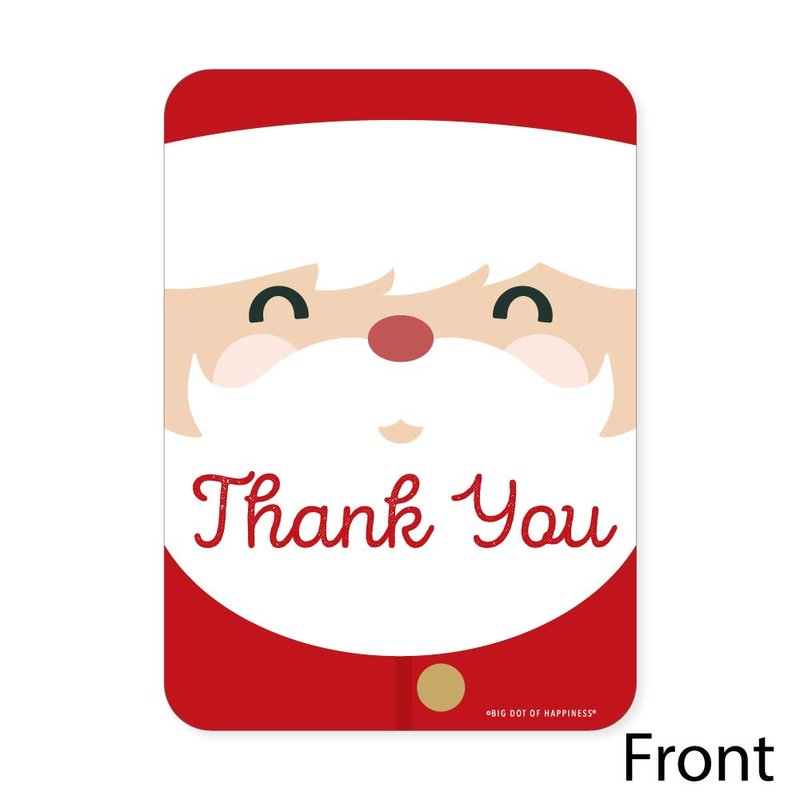 - PREMIUM PARTY THANK YOU CARDS: Jolly Santa Claus party thank you cards are professionally printed on heavy-duty cardstock paper with a photo-like shine. They are individually inspected, then carefully packaged with our exclusive squiggle flap envelopes, making this Jolly Santa Claus stationary set a must-have for any Christmas party.