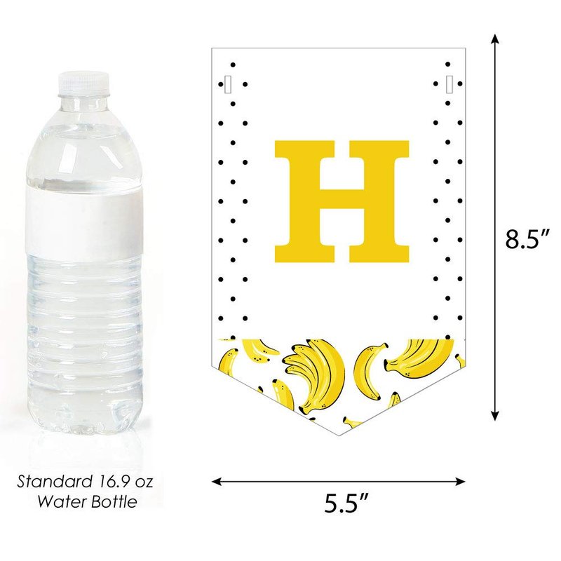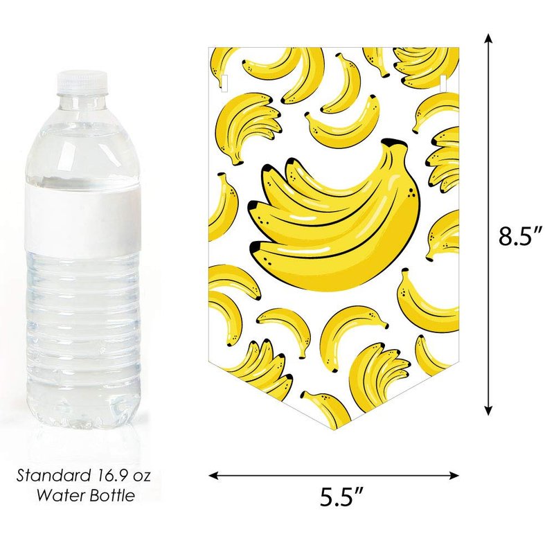 - Banana Birthday Party Bunting Banners SIZE: Each pennant measures 8.5 inches high x 5.5 inches wide. Ribbon measures 24 feet long and 3/8 inch wide.