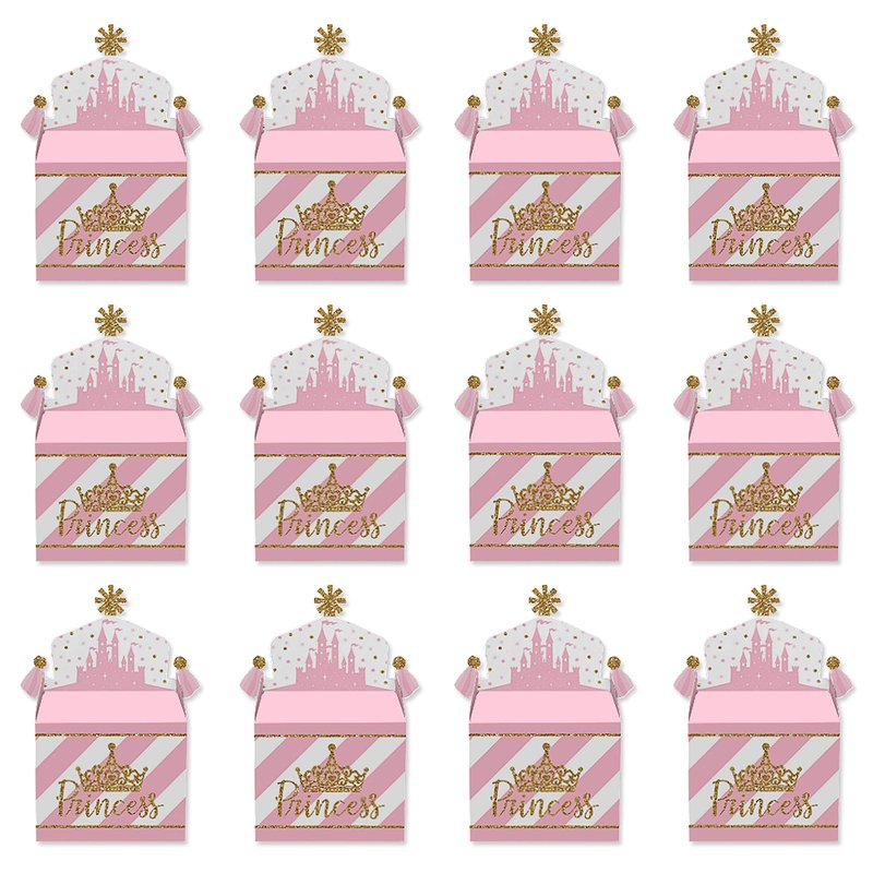Big Dot of Happiness Little Princess Crown - Treat Box Party Favors - Pink and Gold Princess Baby Shower or Birthday Party Goodie Gable Boxes - Set of 12
