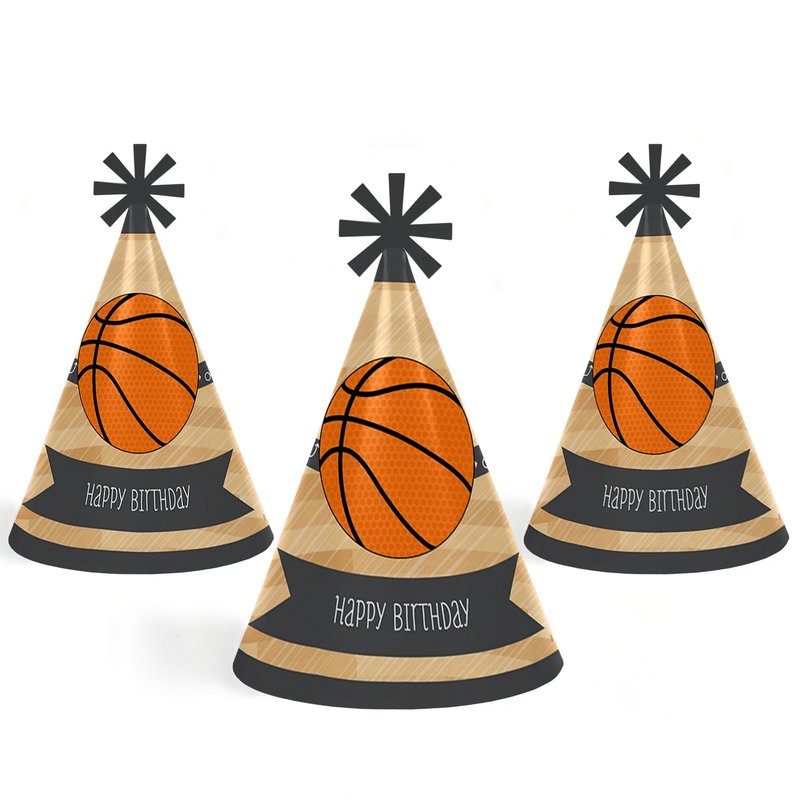 - FUN BIRTHDAY PARTY SUPPLIES: Nothin' But Net - Basketball cone party hats are perfect for your basketball party. This set of cute party hats will help you take memorable party photos. They are sure to be enjoyed by all your friends and family - and the guest of honor!