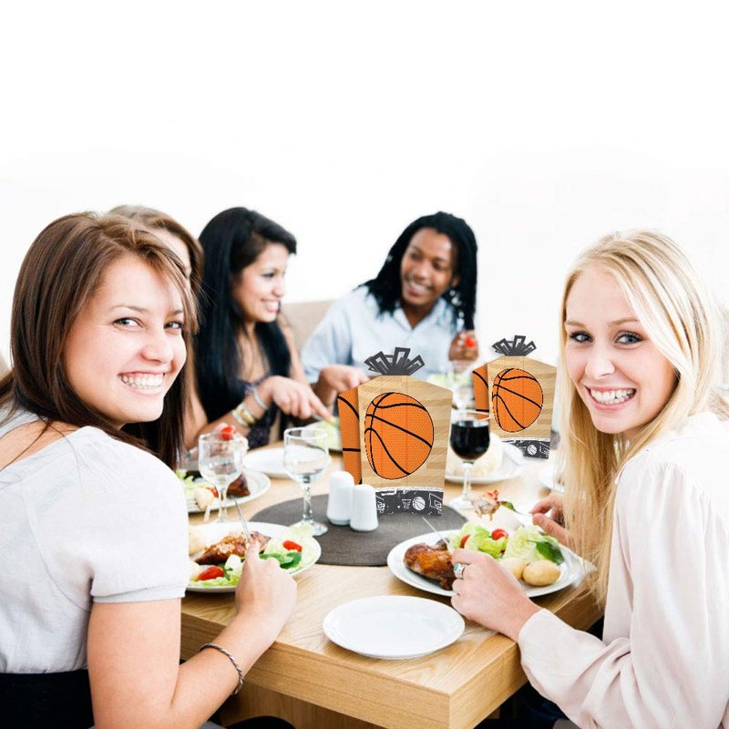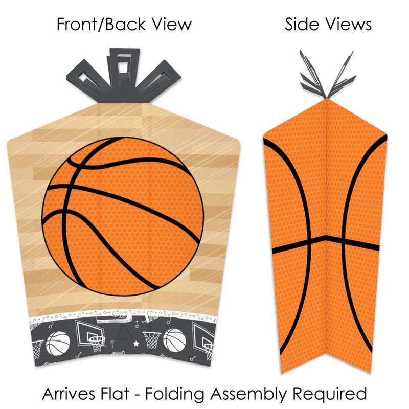 - EASY TABLE DECOR: Each Nothin’ but Net - Basketball centerpiece SIZE 5 inches wide (front/back) x 3 inches wide (sides) x 10.5 inches tall. This 10 count table decorations set requires easy folding to flare out each centerpiece at your desired look. Easy DIY folding assembly: Use a flat surface to fold along the scored creases to stand the centerpiece upright and be able to balance on its own.