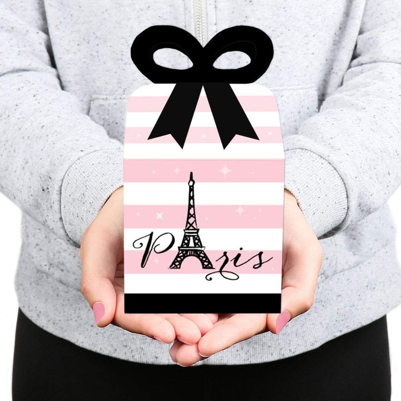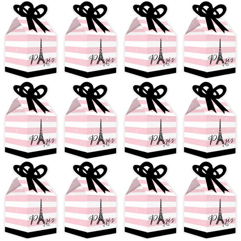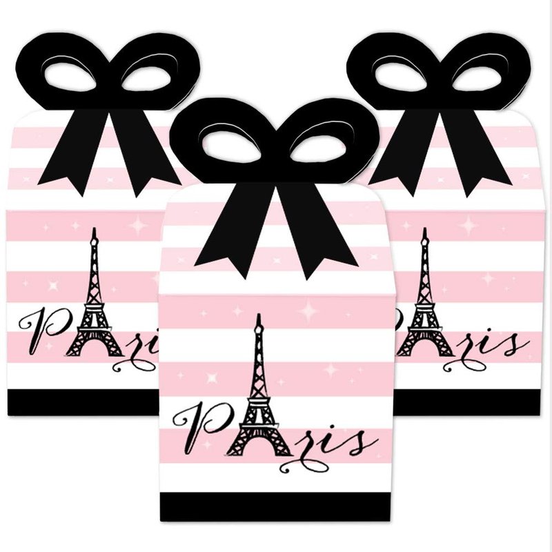 - CUTE GIFT BOXES: This small, closed favor box can be filled with homemade treats (fun cupcake box), party trinkets, or thank you gifts. At the party, have each guest fill their Paris, Ooh La La bow box with snacks from a candy buffet or use as a party loot box. Guests will have fun guessing what surprise each favor gift box contains.