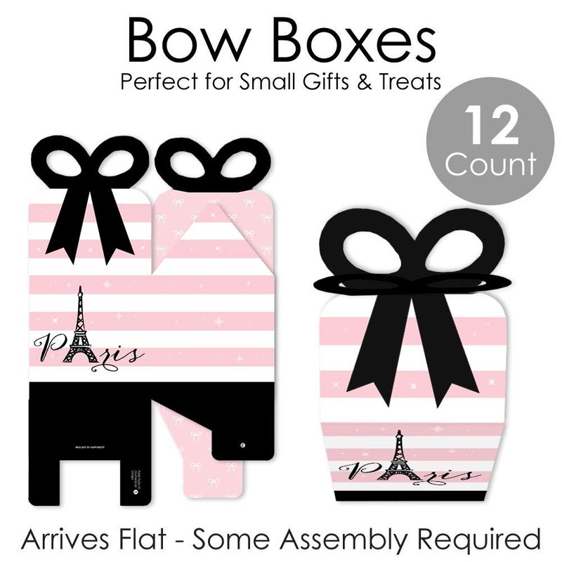 Big Dot of Happiness Paris, Ooh La La - Square Favor Gift Boxes - Paris Themed Baby Shower or Birthday Party Bow Boxes - Set of 12