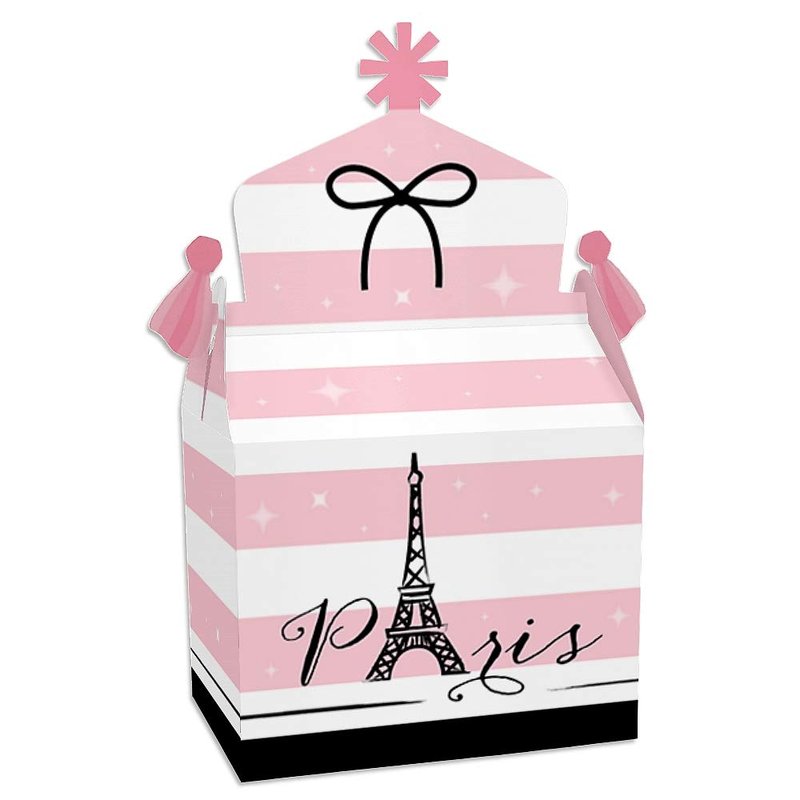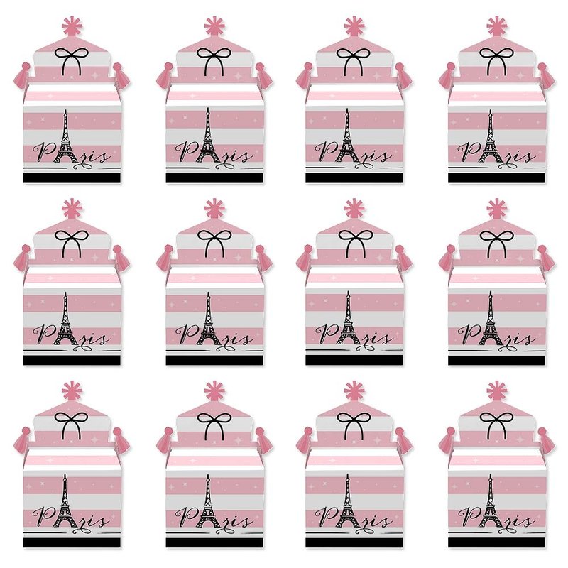Big Dot of Happiness Paris, Ooh La La - Treat Box Party Favors - Paris Themed Baby Shower or Birthday Party Goodie Gable Boxes - Set of 12