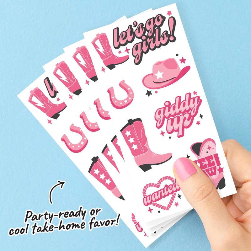 Big Dot of Happiness Rodeo Cowgirl Temporary Tattoos for Kids and Adults, Giddy Up Birthday Party Favors, Bachelorette Favor Kit, Let's Go Girls Decorations, Pink Western Party Supplies, 12 Sheets