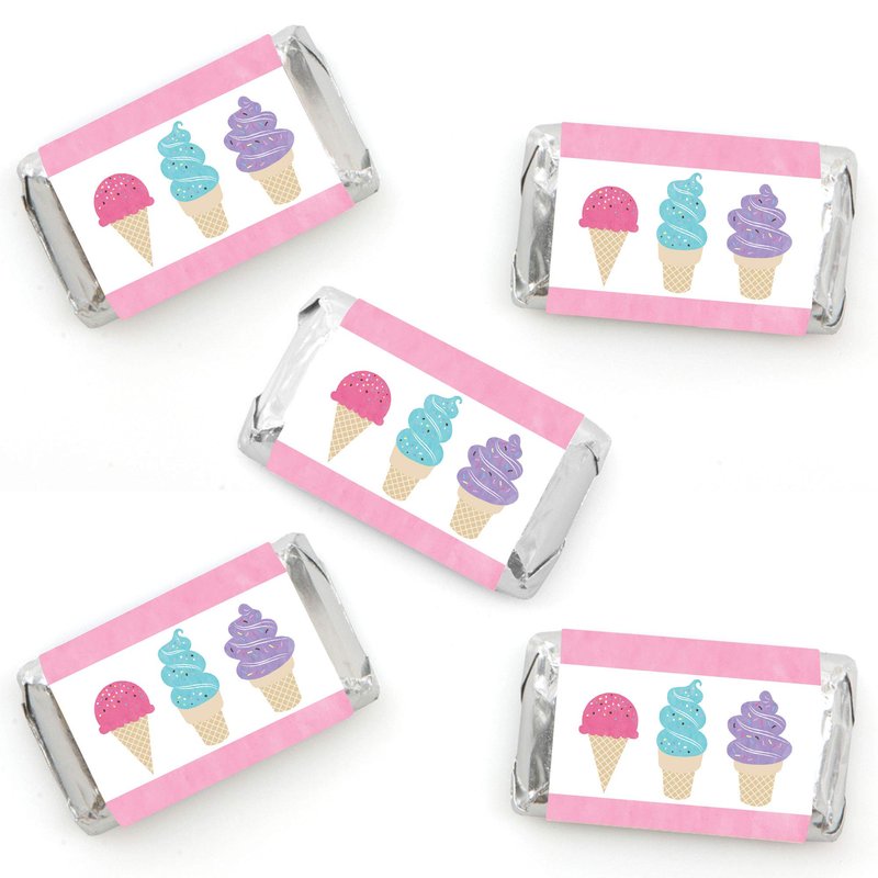 - Scoop Up the Fun - Ice Cream Mini Candy Bar Wrappers INCLUDES 40 candy stickers, perfect for styling an adorable pastel ice cream candy buffet or unique baby shower or birthday party favors.