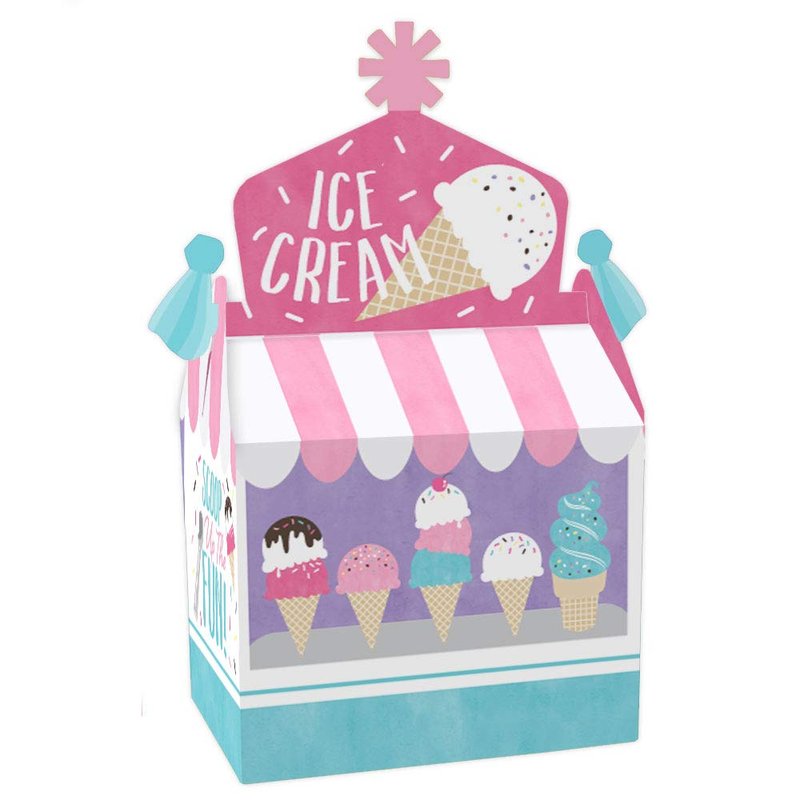 - Gable Boxes INCLUDE: 12 Scoop Up The Fun - Ice Cream-themed goodie party favor boxes. Each box SIZE measures 4.25 inches length x 3 inches width x 7.75 inches height. Gable favor boxes are ideal for small gifts and treats that are under 3.5 inches tall (height for storing items in closed box).