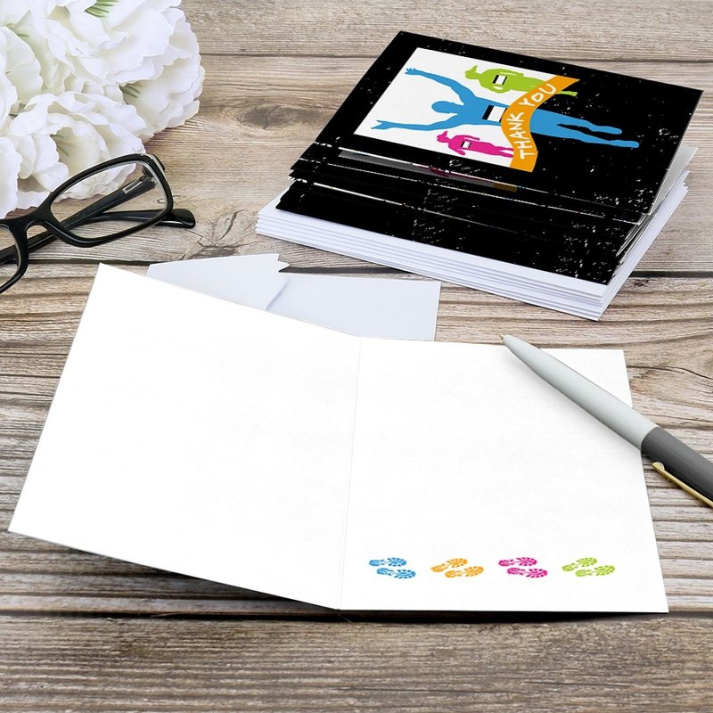 - MADE IN THE USA: Set The Pace - Running - Thank You Cards are designed and manufactured at our Wisconsin facility using materials that are Made in the USA.