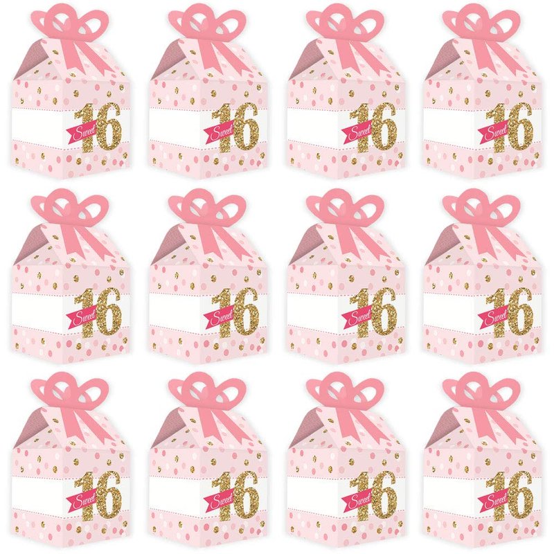 Big Dot of Happiness Sweet 16 - Square Favor Gift Boxes - 16th Birthday Party Bow Boxes - Set of 12