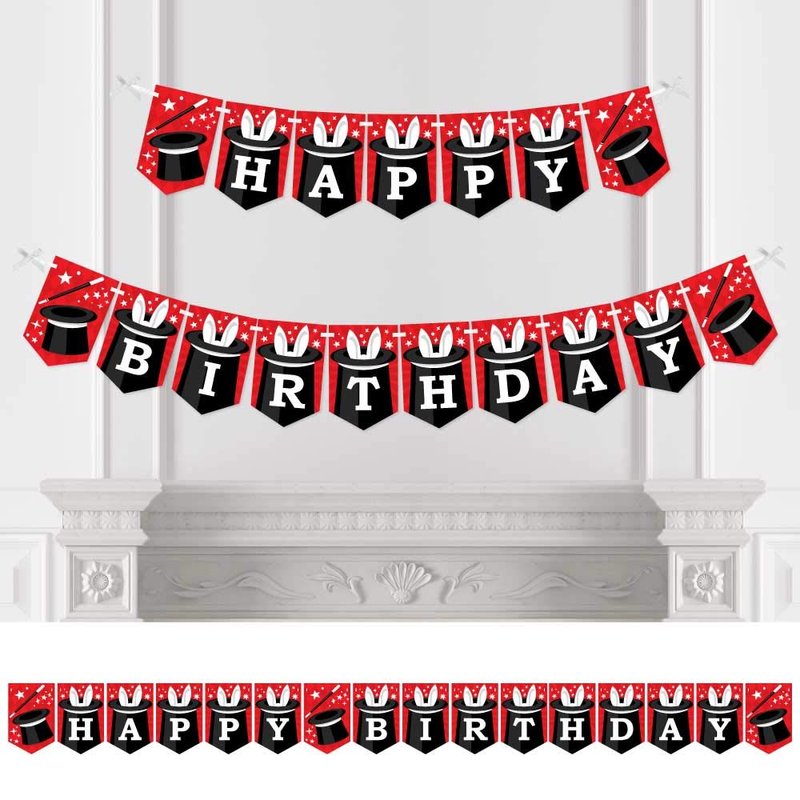 - Ta-Da, Magic Show Bunting Banner is an impressive birthday decoration for your party. Magical Birthday Bunting Banner Decoration Kit INCLUDES HAPPY BIRTHDAY letter pennants, magic themed pennants, satin ribbon and non-marking wall mounts for hanging.