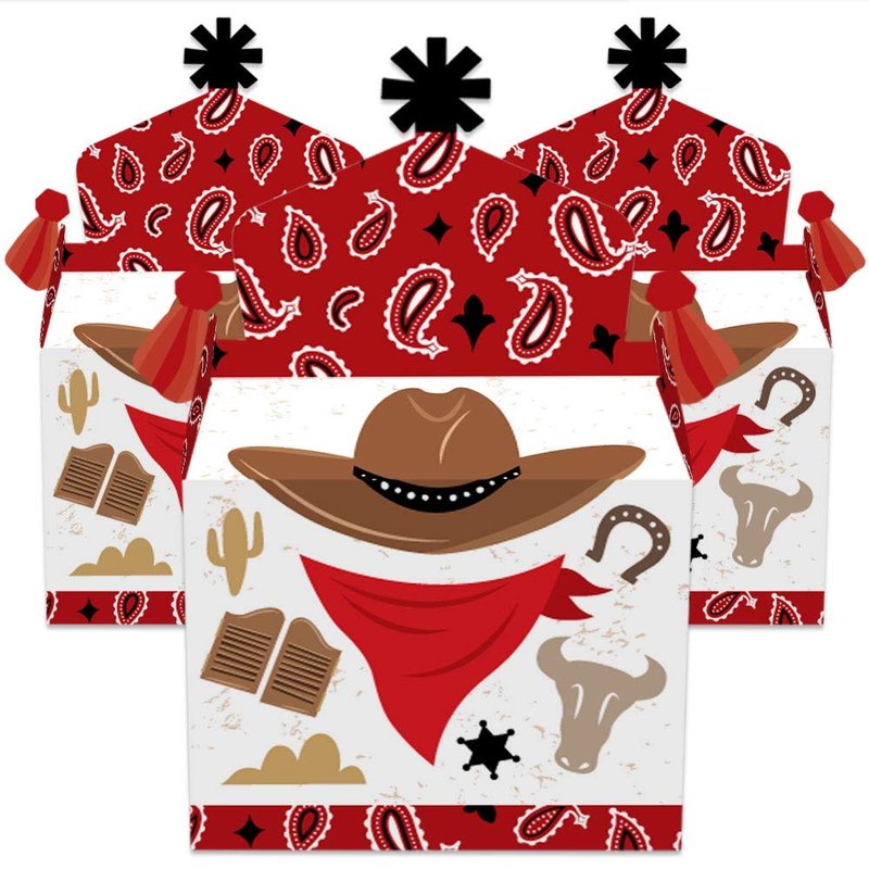 - MADE IN THE USA: Western Hoedown Baby Shower or Birthday Party goodie gable boxes are designed and manufactured at our Wisconsin facility using materials that are Made in the USA.