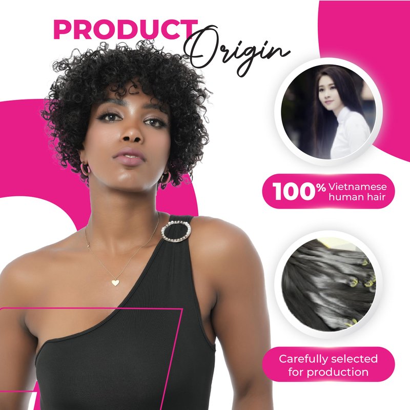 Relevancy Hair Extension Type: Curly Pixie Cut Vietnamese Human Hair Wig 180% Density