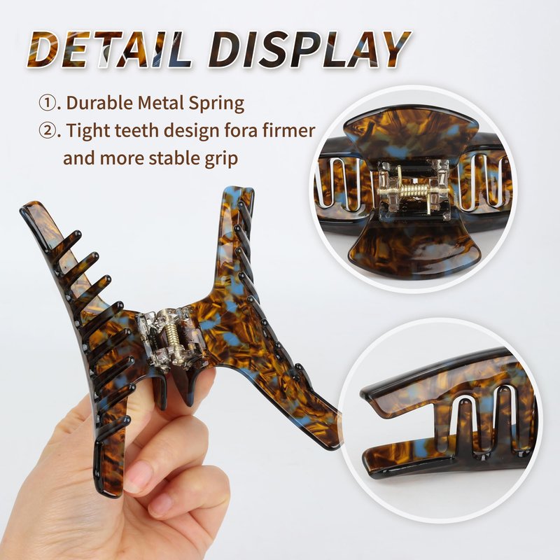 - [Sturdy&Non-slip]: The leopard hair claw clips with durable celluloid acetate, a high quality strong and sturdy acetate material for hair ornaments. Powerful metal spring can strongly grip our hair and doesn’t easily slip. The hair claws open almost 180 degrees versus. Great for long thin,thick,straight,curly wavy hair. Jaw hair claw clips are perfect for creating easy hairstyles , which fits the back of the head very well.