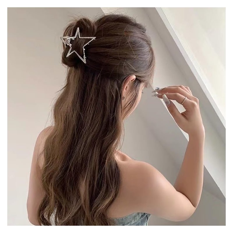 - Star Y2K Hair Claw Clip Size: The stars claw barrettes size 2.75 inch, perfect size can strong hold your hair well when you washing face, doing exercise, makeup, taking shower and working, etc, the metal star hair claws not only keep you hair in place but taking them out has been hassle free