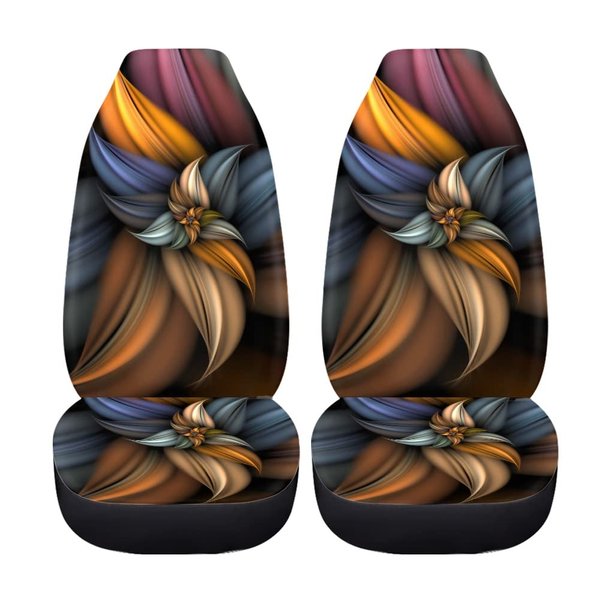 BIGCARJOB Retro Flower Pattern Auto Seat Covers 2pc Set Easy Install Full Wrap Bucket Seat Covers Elastic Back,fit Most Vehicle