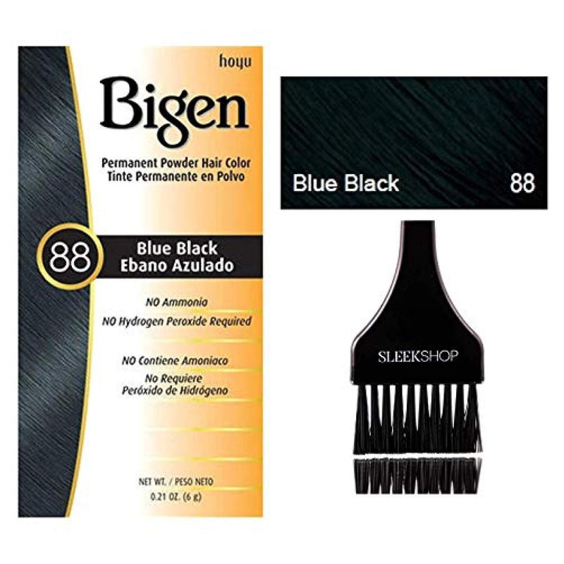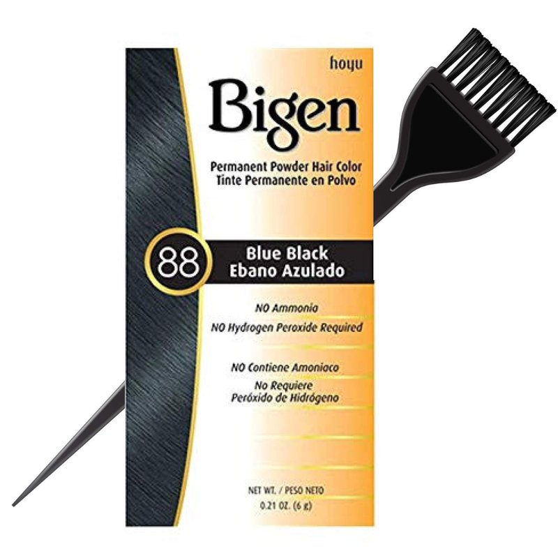 Bigen Hoyu PERMANENT POWDER HAIR COLOR Dye, No Ammonia, No Hydrogen Peroxide Required (w/Sleek Brush) 0.21 oz / 6 g Haircolor (88 Blue Black)