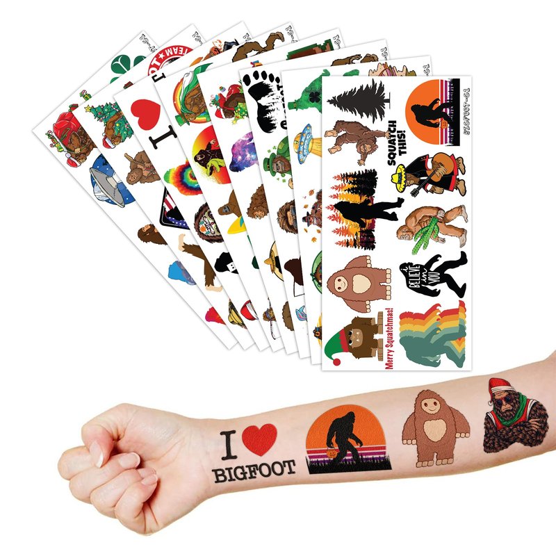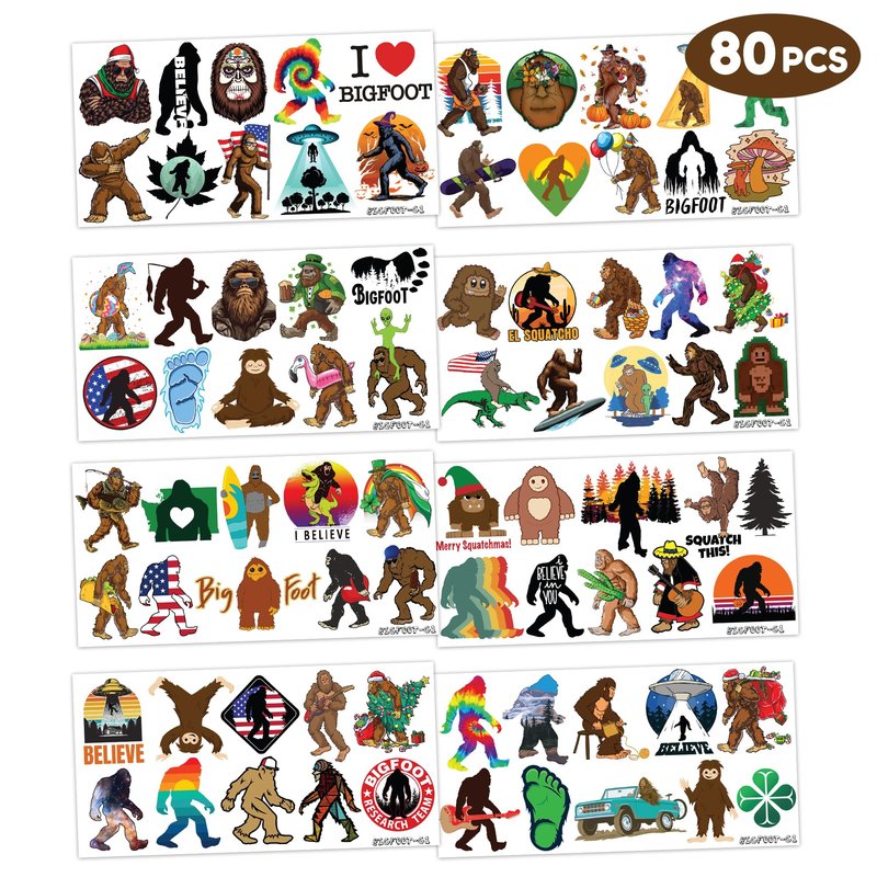- 🌲【PERFECT TATTOOS FOR THEMED BIGFOOT】: If you're fascinated by the mystery and allure of Bigfoot, our set of temporary Bigfoot tattoos will surely captivate you. With 8 sheets featuring a total of 80 intricate and charming designs, our collection is a must-have for Bigfoot enthusiasts of all ages. Each sheet measures 6.1 * 3.1 inches, allowing both kids and adults to proudly showcase their love for Bigfoot on clothing, accessories, or as a thoughtful gift for fellow Bigfoot believers.