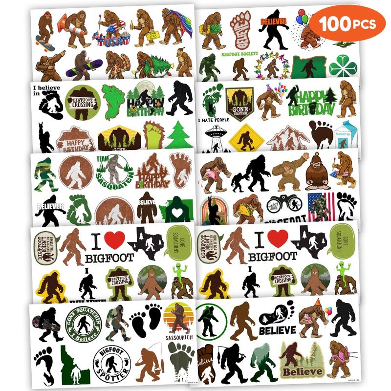 Bigfoot Temporary Tattoos 10 Sheets 100 PCS Bigfoot Jungle Party Decorations Favors Supplies Sasquatch Theme Birthday Cute Stickers Christmas Gifts for Boys Girls Class School Prizes Carnival