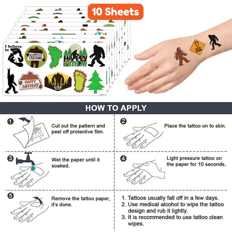 - Customer Service: Kindly contact us ASAP for any helps and all issues can be solved. This set of Bigfoot Temporary Tattoos party favors are abundant in quantity and diverse styles that can meet your various party needs or daily needs. Thanks so much for shopping with us!