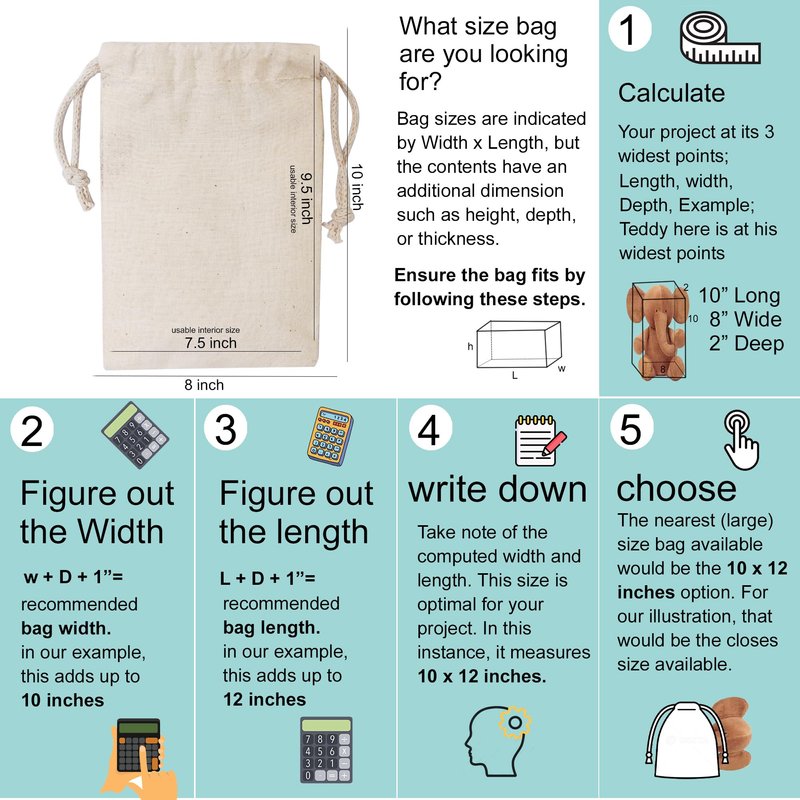 Who said you can't recreate a moment? With reusable muslin bags, send some warmth to the special ones in your life and spread some love! Our Muslin Bags comes in a quality that is unavailable from competing products. Cotton Muslin Bags - 100% Organic Cotton Double Drawstring Premium Quality Eco Friendly Reusable Natural Bags. Fabric: 100% Organic Cotton Sealing: Double Drawstring Color: Natural Packaging: Pack of 100 Eco Friendly. By using eco-friendly products, each person is contributing to the safety and preservation of the resources provided from the planet, such as metals, plastics, and even water. If more people use eco-friendly products, the cost of other products will go down, and it would benefit all inhabitants, human and animal. Eco-friendly products are both good for the environment and safer for consumers! They are the smart choice for families everywhere. Thank people who matter and the environment with Biglotbags because it's never too late to reach out and make up for your actions. Lifetime Warranty. If you are not happy with our muslin bags. return it for a full refund. If you do not love them, we will buy it from you, no question asked. Biglotbags are all about a one time investment into lifelong convenience and satisfaction. Click βAdd to Cartβ right now and order yours today!