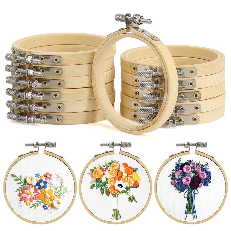 - EXQUISITE CRAFTSMANSHIP - Our Bamboo Circle Cross Stitch Hoop Ring every sewing rings hoop comes with double layers, paired with anti-skid patterns and a stainless steel screw, effeciently fasten your embroidery cloth. (Embroidery cloth is not included), ideal hoops for crafting DIY beginners.