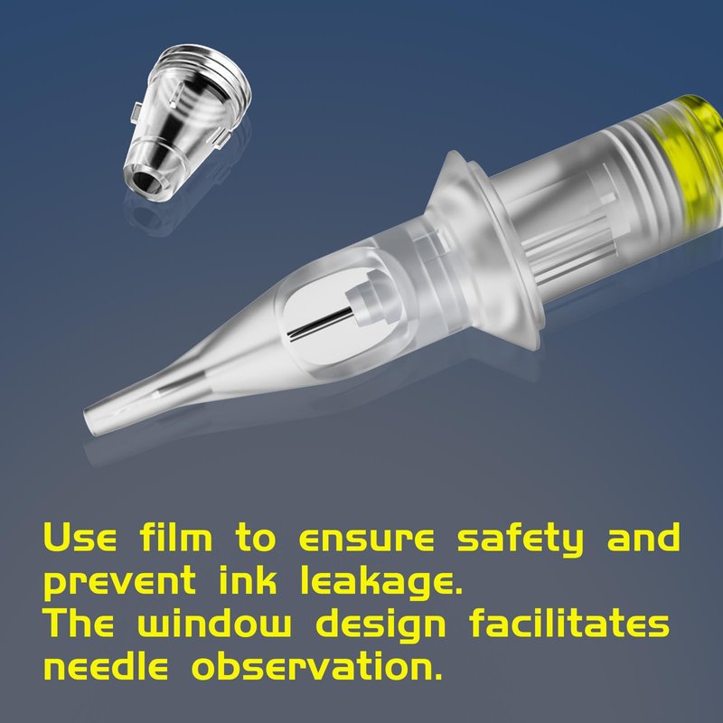 - Rubber band loaded cartridges, with plastic membrane so that tattoo ink won't flow back to the tubes.