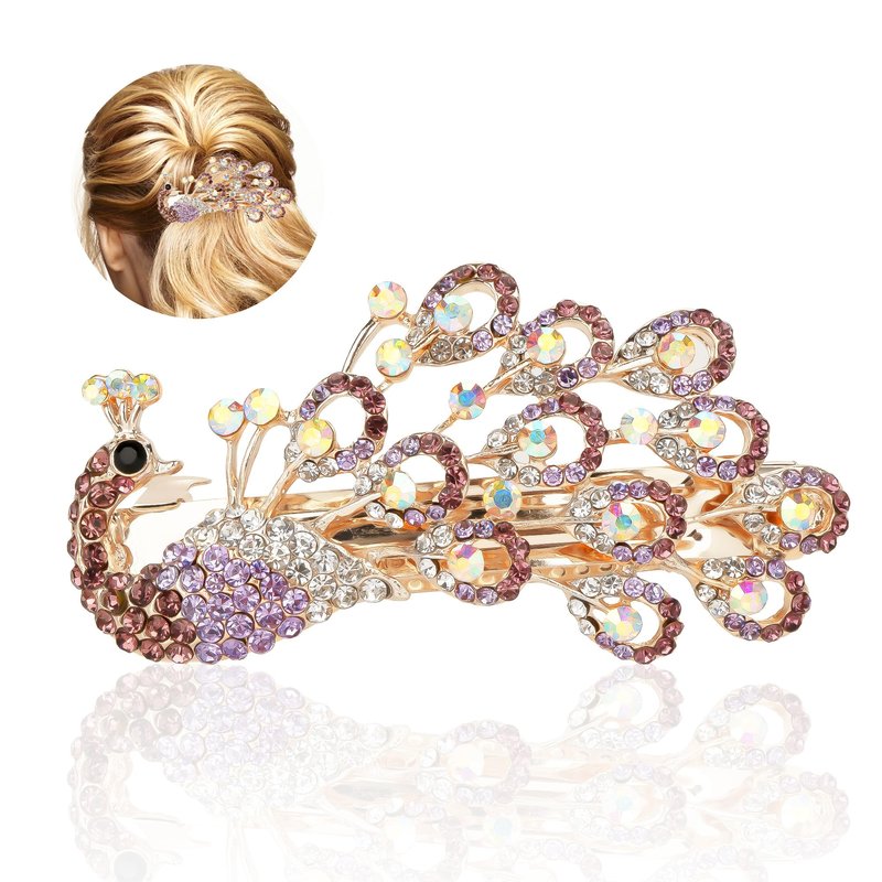 Biiange Crystal Rhinestones Hair Clips Crystal Peacock Hair Clip Purple Rhinestones Clips Headwear Styling Gift for Female (1Pack, Purple)