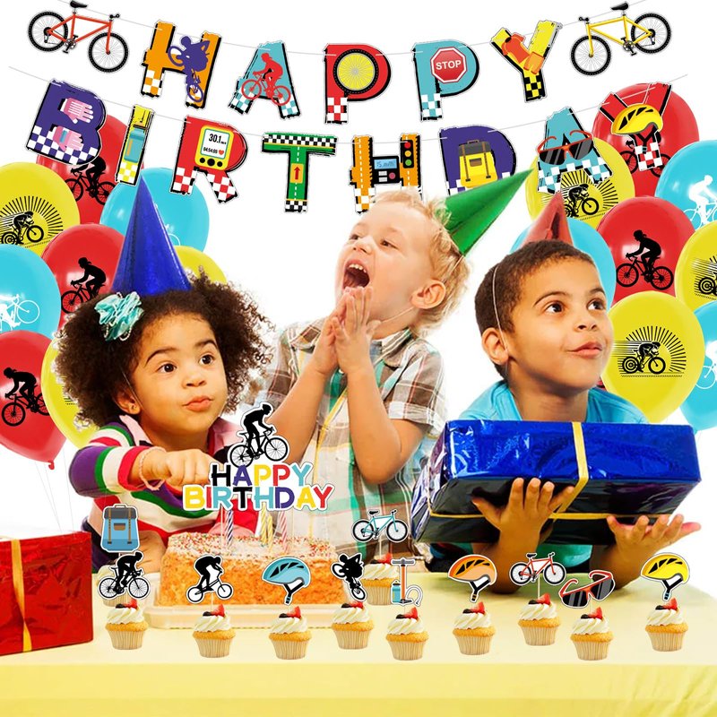 Bike Themed Birthday Party Decorations, Include Happy Birthday Banner, Cake Toppers, Balloons, Bicycle Theme Party Supplies for Kid's Birthday Bicycle Fans Sports Theme Party