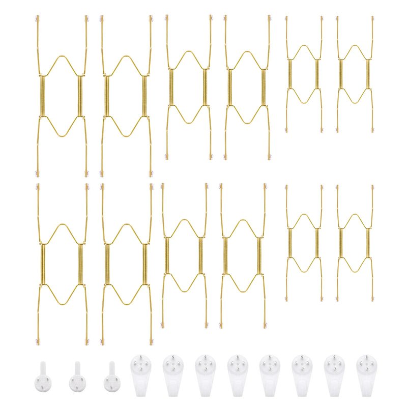 Bilillo 12 Pieces Stainless Steel Decorative Wire Plate Holders, 6/8/10 Inches Invisible Wall Plate Hangers, 3 Sizes Home Decoration with Wall Hooks for Antique Plates and Arts (Gold)