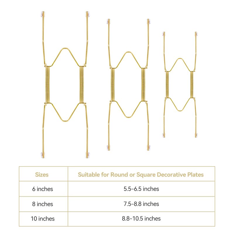 - 【Multiple Sizes & Well Made】The Wall racks come in a variety of sizes for a wide range of uses and can accommodate multiple sized plates. The appropriate size will not be too loose or tight, and the plate will not fall easily or break. 6 Inch, fit for holding 5.5 to 6.5 Inches round or square plates. 8 Inch, fit for holding 7.5 to 8.8 Inches round or square plates.10 Inch, fit for holding 8.8 to 10.5 Inch round or square plates.