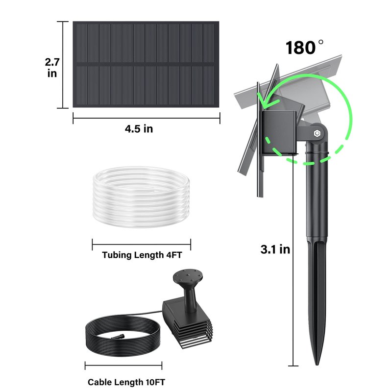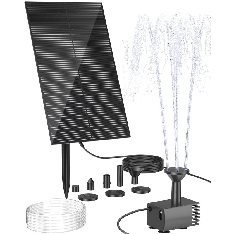 - PERFECT WATER FOUNTAIN - Our solar pump kit comes with 1.5 W solar panel,water pump, sprinkler heads and water pipe. We are so confident in the quality of our Bird Bath Fountains and we are always ready to discuss your concerns. Any questions, just email us!