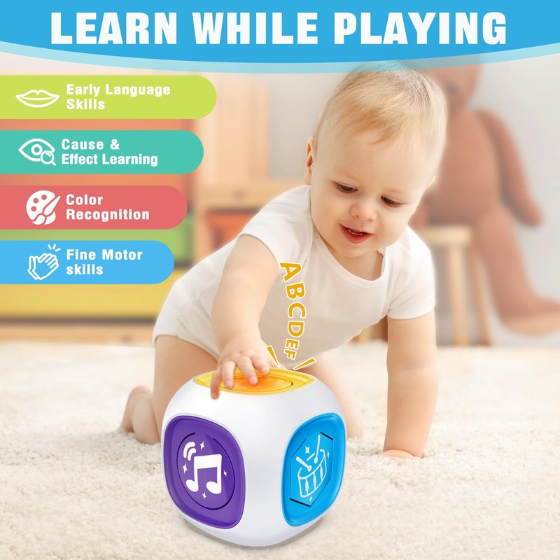 - Great Early Educational Toy: This cube thoughtfully goes beyond traditional toys by helping your baby build various skills. Its light-up design and interactive buttons not only promotes hand-eye coordination, motor skills, and language development, but also can stimulate the baby's interest in learning and desire to explore.