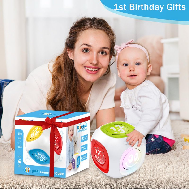 Bilingual Learning Activity Cube Toys for 1 Year Old Boy Girl, 12-18 Month Early Developmental Baby Musical Toys with Music & Light, Toddler Toys Age 1-2, Christmas Birthday Gifts for 1+ Year Old
