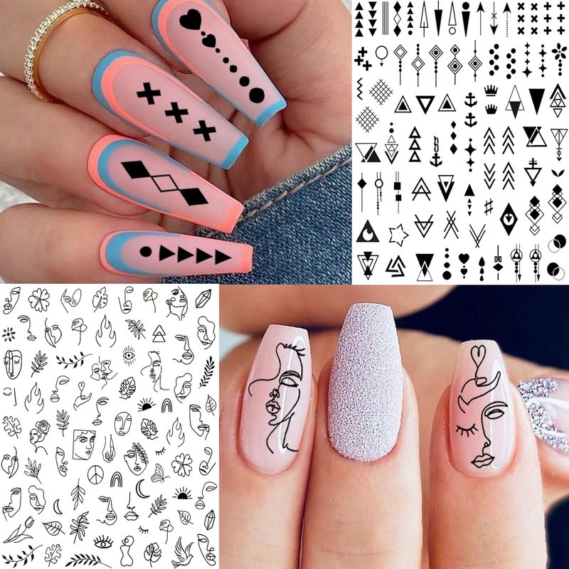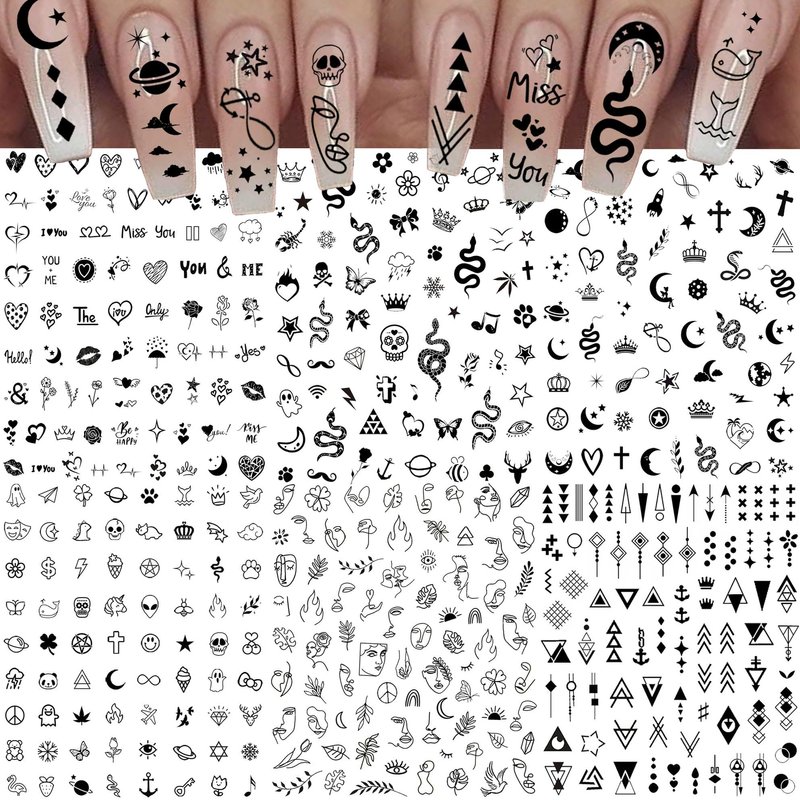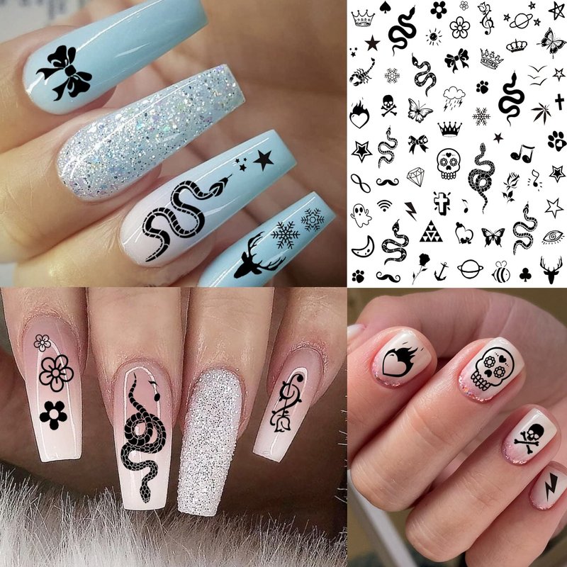 - 🐙【Delicate Design Nail Stickers For Nail Art】🐠 A Pack Contains 6 Sheets Size 4.1x3.1 Inches Exquisite Gel Nail Art Stickers & Decals With Charming Patterns: Unique Summer Black Abstract Women Lady Face Nail Decals For Nail Art, Small Little Tiny Funny Cute Animals Sun Crescent Moon Planet Cross Infinity Skull Ghost Crown Leaf Leaves Floral Flower Snake Unicorn Dinosaur Nail Sticker For Girls Kids, Fashion Geometry Geometric Triangle Diamond Arrow Love Heart Star Nail Sticker For Women.