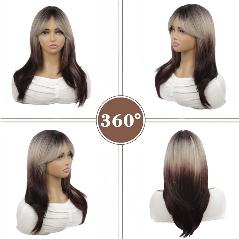 - 1.Straight Wig with Bangs: The straight wig with bangs adds a touch of elegance and versatility to your look, allowing you to style it in various ways for different occasions.