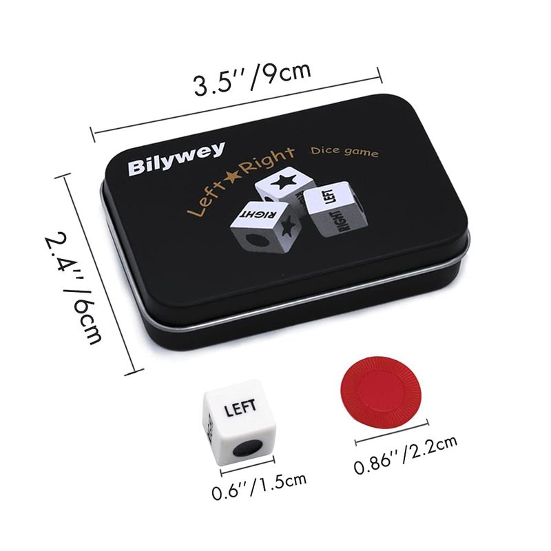 - Nice Design : Dices with 4 signs in each tube - "Left", "★"(Center), "Right" and "●"(Dot)