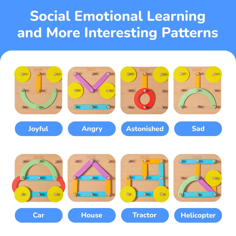 Bimi Boo Wooden Stacking Letters and Numbers Construction Activity Set for Toddlers, Peg Board Shape Sorter for Learning ABCs, Numbers, Emotions (28 Sticks, 1 Board, 1 Guide Booklet)