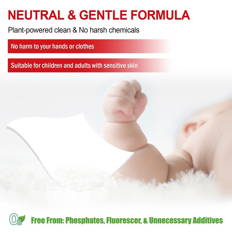 - ๐๐จ ๐๐จ๐ซ๐ ๐๐๐ฌ๐ข๐๐ฎ๐: Feedback from many consumers on dissolution problems, we have experimented many times, the cleaning sheets can be quickly dissolved without residue in hot water, cold water, hard water or soft water. Please rest assured to use, no more residue sticks on clothing.