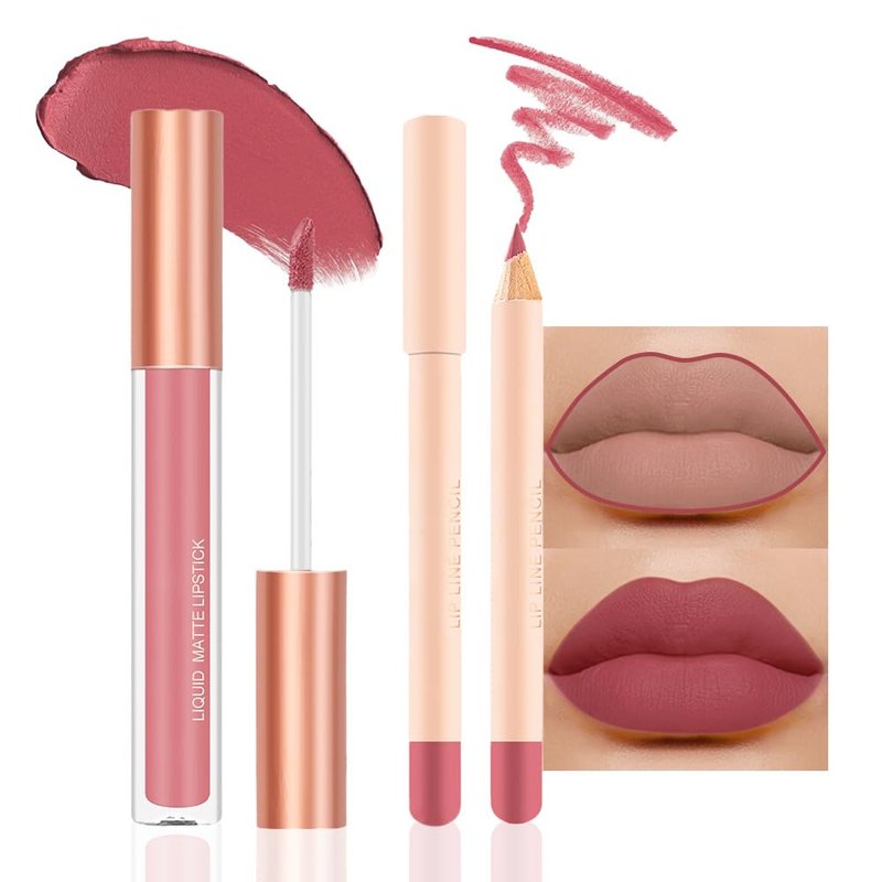 BINGBRUSH Colors Liquid Matte Lipstick and Lipliner Pack Set, Lip Tint Long Lasting 24 Hour Waterproof Velvet Nonstick Cup Lipgloss Lip Stain Pigmented Lip Makeup Gift Sets (1Pc 03#)