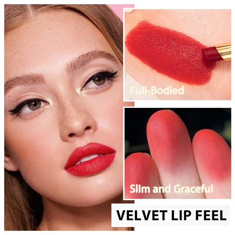 BINGBRUSH Moisturizing and Silky Velvet Lipstick Pack Set, Matte Longwear Waterproof Smooth Color Lip Crayon - Nourishing Lipstick Lipgloss Lip Stain (03#True red)