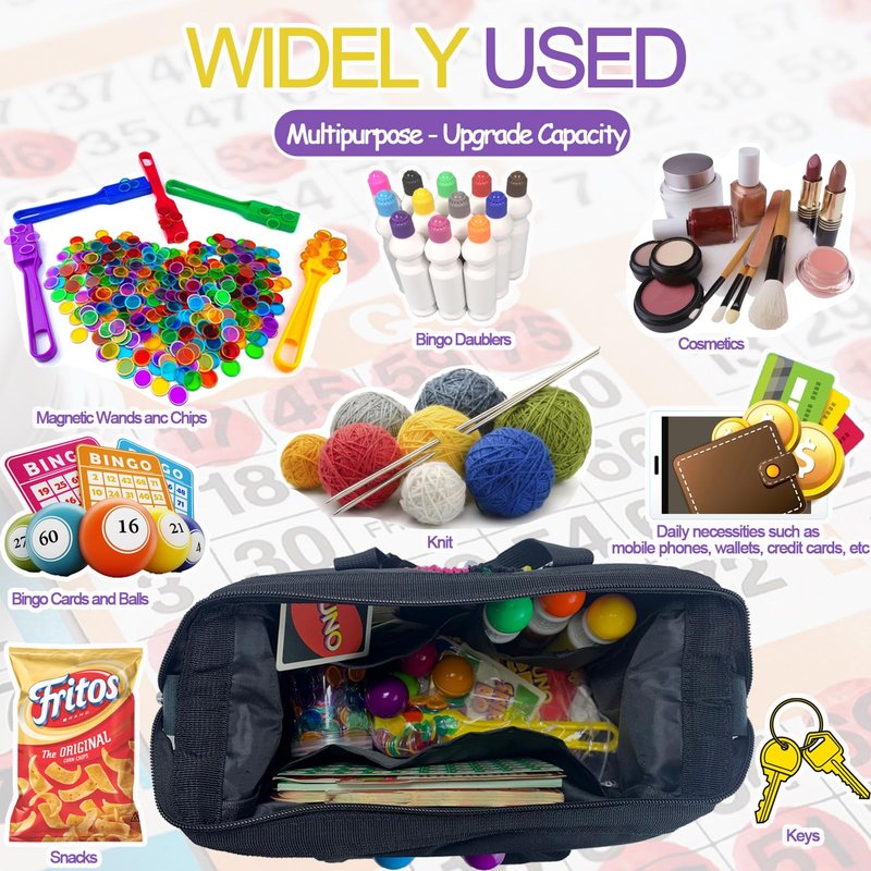 - Versatile Functionality: Beyond bingo, this bag serves multiple purposes, doubling as a convenient storage solution for cosmetics, knitting supplies, or even as your daily carry-all. Enjoy its versatility and practicality beyond the confines of the bingo hall.