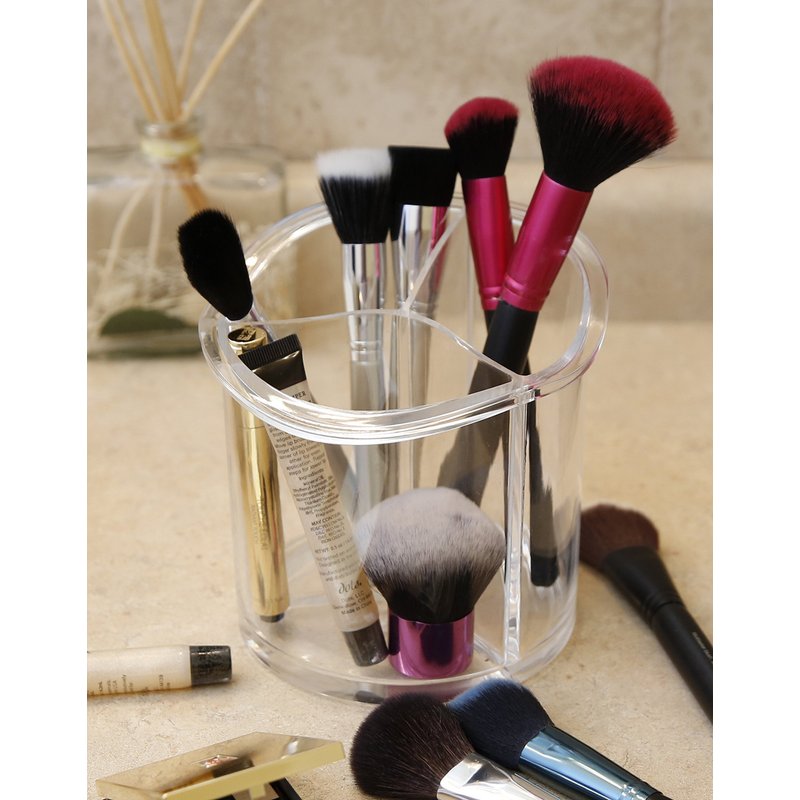 This acrylic organizer has standing sections that are perfect for taller items such as brushes or pencils. Made out of durable, crystal clear acrylic. To clean, wash with a gentle soap and warm water.