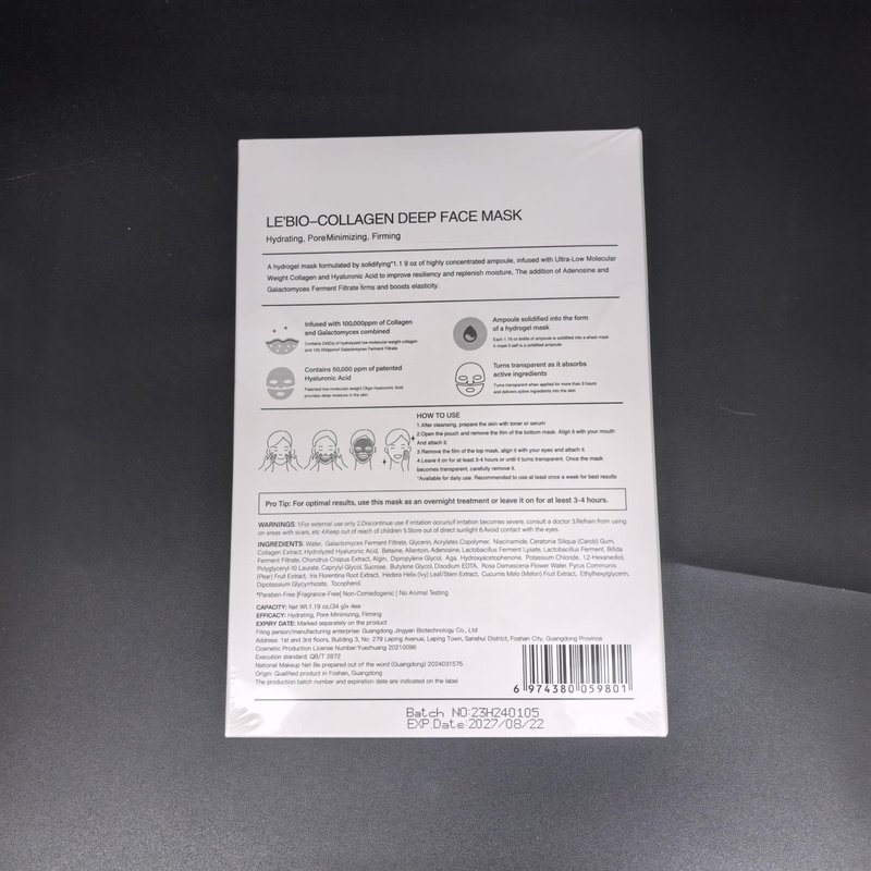 - Bio-Collagen Face Mask—Bio-collagen mask quickly moisturizes the skin surface and penetrates deep into the skin to create hydrated skin