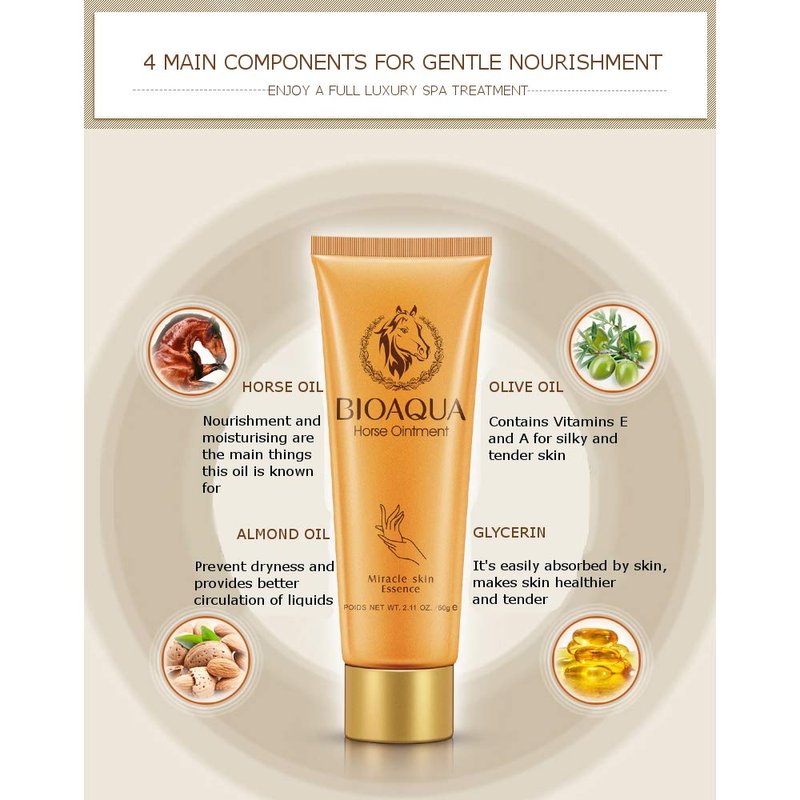 BIOAQUA Horse Oil Hand Cream Anti-ageing Ointment Miracle Skin Care Essence Сleansing Foam Rejuvenation Natural Moisturizing 60g