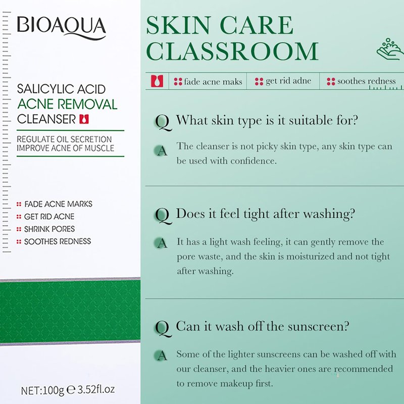 BIOAQUA Salicylic Acid Acne Marks Removal Deep Foam Cleanser Shrink Pores Soothing Oil Control 100g / 3.52fl.oz