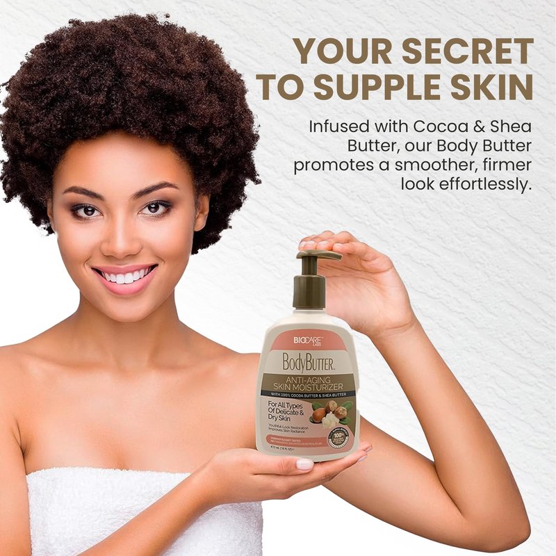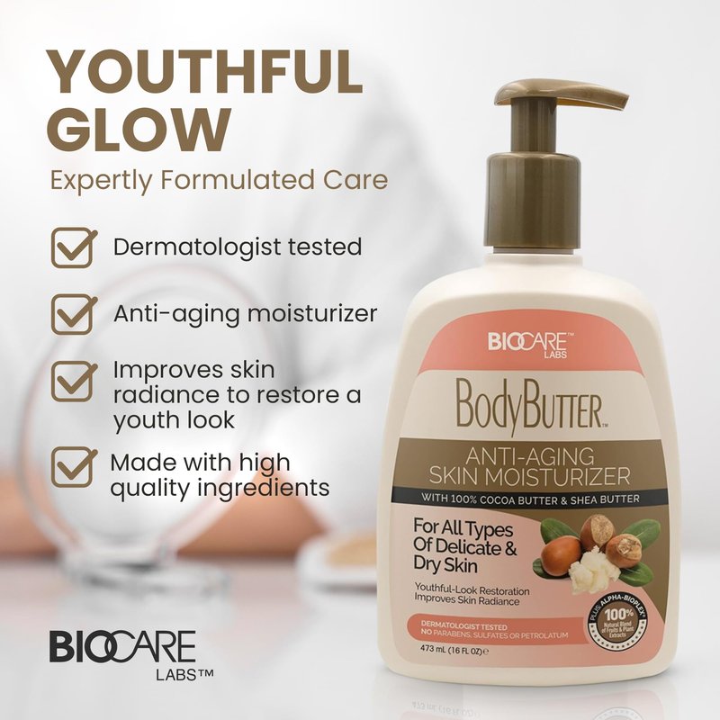 Biocare Body Butter - Infused with Cocoa Butter & Shea Butter plus Alpha-Bioplex for Youthful-Looking, Radiant Complexion, Hydrated, Smoother, Firmer Skin - Without Paraben and Sulfate -16 Oz