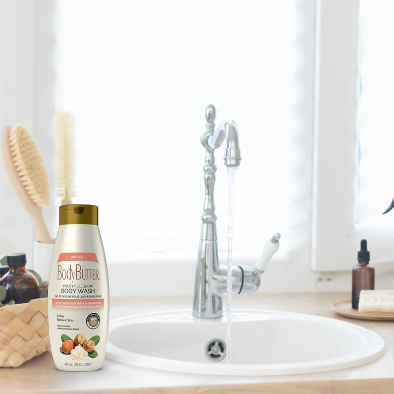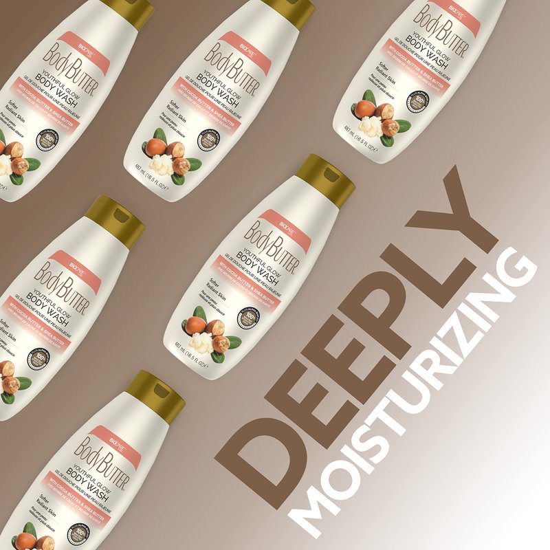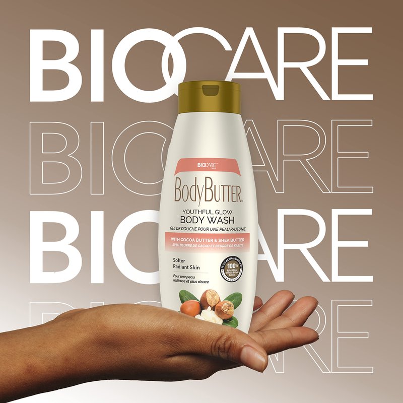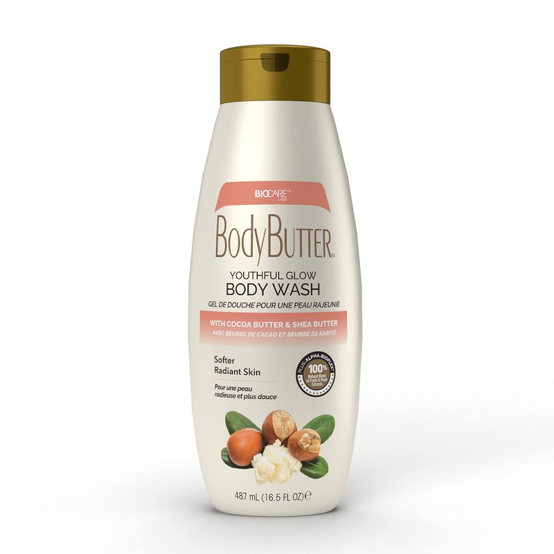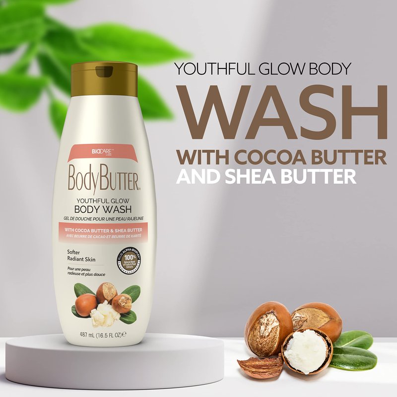 Biocare Youthful Glow Body Wash Infused with Cocoa & Shea Butter, Intensive Moisture, Nourished, Soft Body Wash - 16.5 oz