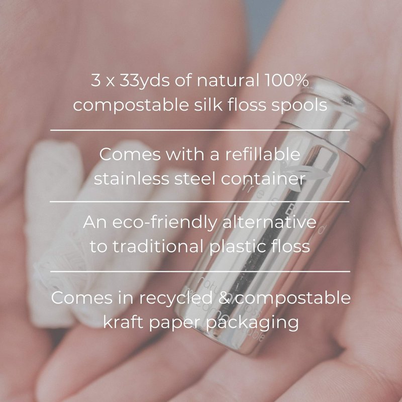 - BETTER FOR THE PLANET - You're probably not going to save the world by using plastic-free dental floss per se. But what you will do is help the earth by making eco-friendly choices when buying compostable and reusable everyday items. Pure Silk Eco Floss by TreeBird is a 100% natural product with no plastic in it so it won't be left behind for hundreds of years to litter our planet and harm wildlife on it.