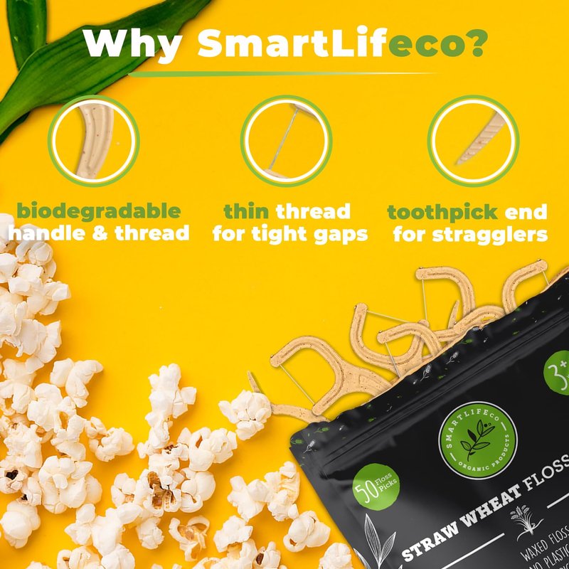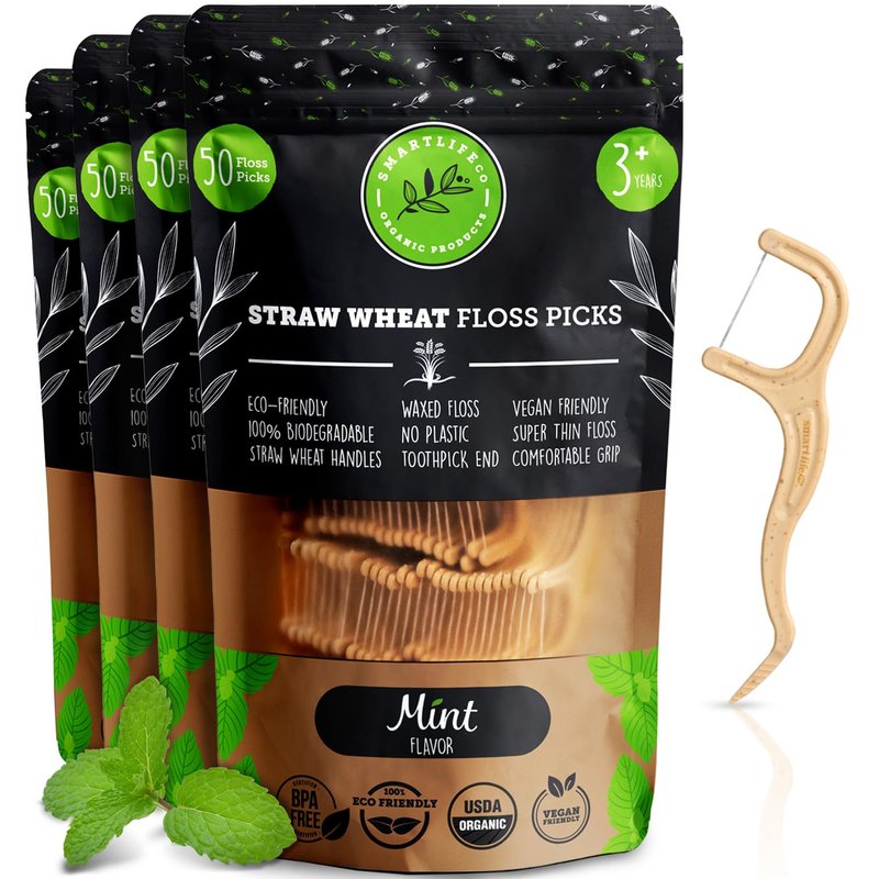 - STRAW WHEAT MATERIAL: Featuring A Compostable Straw Wheat Handle & Nylon-4 Thread! These Floss Sticks Are Better Than Corn Based Teeth Picks Because They Require Less Material To Produce. Even The Packaging Is Recyclable. Giving You The Best Plant Based Products Out There! We're Fully Committed To A Sustainable Future.